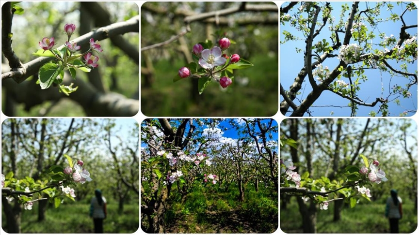 İlkbahar mevsimiyle birlikte bahçelerdeki ağaçlarda açan çiçekler, adeta görsel şölen oluşturdu.