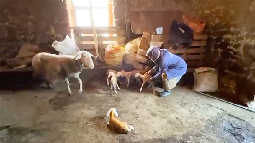 İlçeye bağlı Keçiağılı köyünde 60 yıldır koyun yetiştiriciliği yapan 78 yaşındaki Hasan Barış'ın sürüsünde bulunan kıvırcık cinsi koyun, önceki gün doğum yaptı.