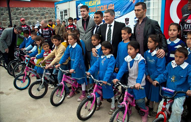 Van'ın Erciş ilçesine 40 kilometre uzaklıktaki Karlıyayla Köyü İlköğretim Okulu'nda düzenlenen bisiklet dağıtım törenine Pendik Belediye Başkanı Kenan Şahin, Erciş Milli Eğitim Müdür Vekili Fesih Yıldız, Attila Bisiklet Takımı Antrenörü Attila Atay ile sporcular katıldı.