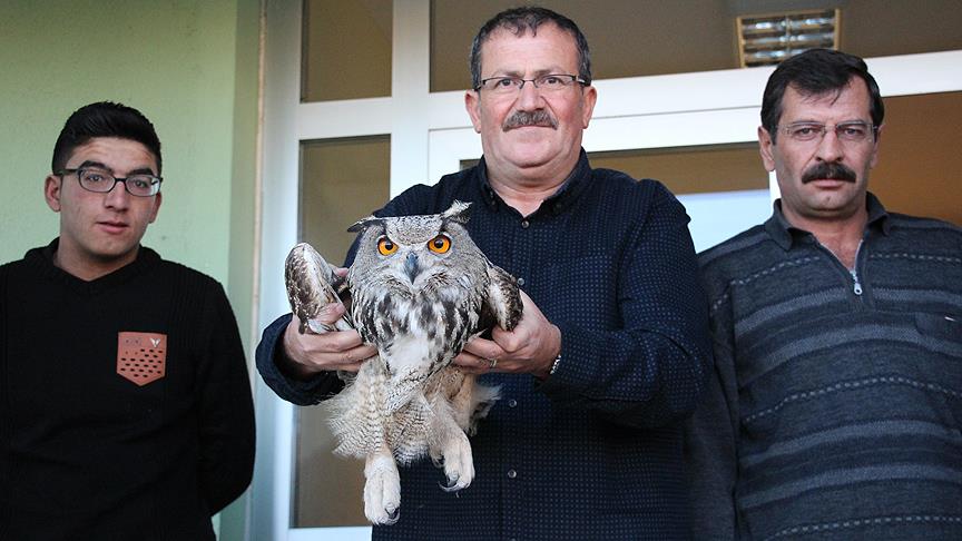 Sivas'ın İmranlı ilçesinde ormanlık alanda yaralı bulunan ve kanat açıklığı 2 metre olan "dev" baykuşa vatandaşlar sahip çıktı.