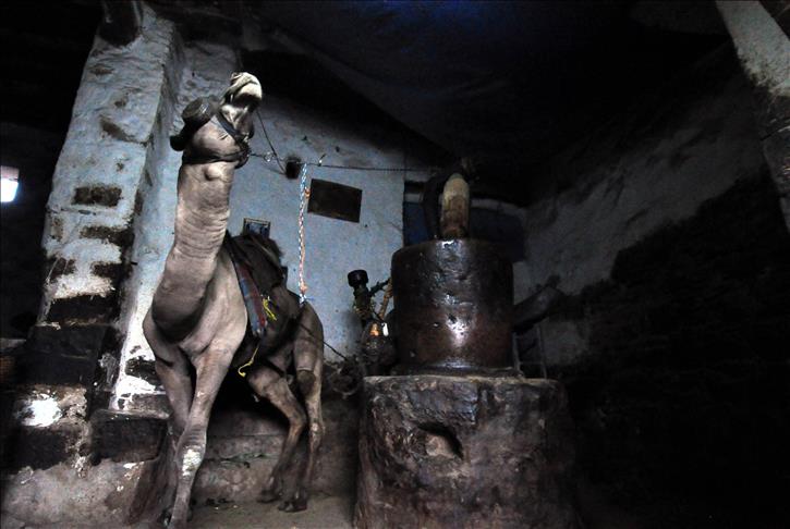 Tarihi çarşıdaki susam değirmenleri, geleneksel tarzda develerin yardımıyla mucize yağ için dönüyor.