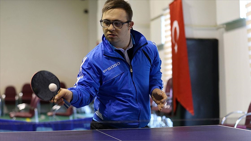 Okulda öğretmenleri tarafından masa tenisi yeteneği fark edilen down sendromlu Halil İbrahim Süzgeç, 7 yıl önce eline aldığı raketi bir daha bırakmadı.