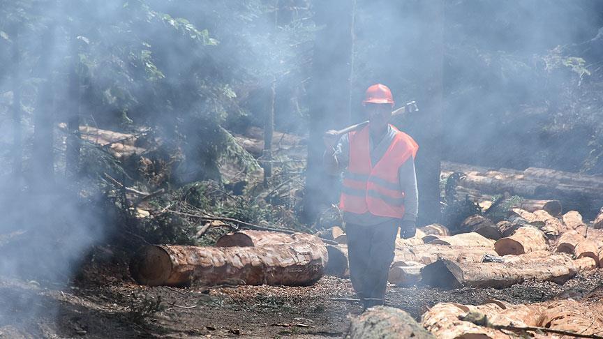 Yaycıoğlu, "İşçilere 4 bin metreküp alanda ağaç kesimi işi verdik. Şu anda bölgede 35 kişi çalışıyor. İşleri insan gücüne göre dağıtıyoruz. Ağaçlar ilk önce kesiliyor, boylanıyor, sonra da tomruk haline getiriliyor. İşaretlenme işleminin ardından orman deposuna getiriliyor. Burada tomruk veya kağıtlık olarak belirlendikten sonra satışa sunuluyor." diye konuştu.