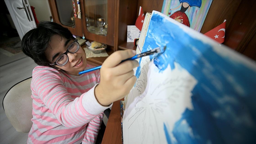 Kırklareli'nin Babaeski ilçesinde yaşayan serebral palsi hastası ve yüzde 50 görme engelli Elif Aktan, yaptığı birbirinden güzel resimlerle hayata tutunuyor.