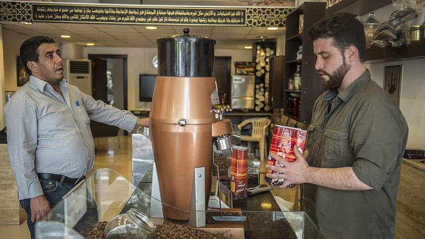 Bedir Olabi, AA muhabirine yaptığı açıklamada, yaklaşık 10 yıl önce Halep'te kahve sektörüne girip iş dünyasına adım attığını söyledi.