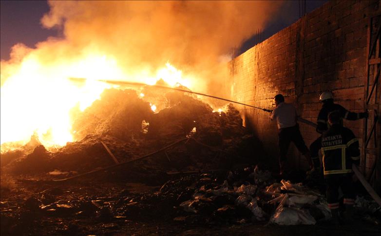 Hatay'da geri dönüşüm plastik fabrikasının sahasında yangın çıktı.