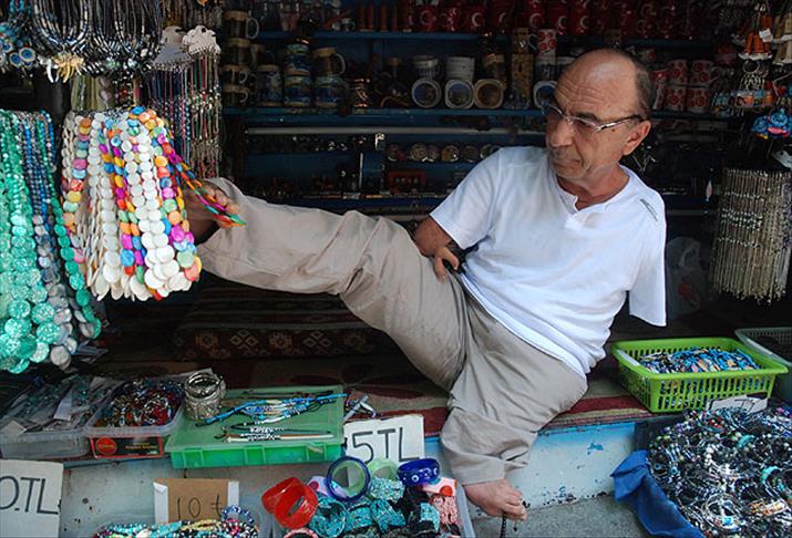 Antalya Kaleiçi'nde yerli ve yabancı turistlere yönelik hediyelik eşya dükkanı bulunan Temel, işyerine her gün kendisine göre yaptırdığı otomobiliyle geliyor. Daha sonra işyerinde çalışmaya başlayan Temel, kolları olmamasına rağmen ellerini ayakları gibi kullanarak işlerini yapıyor.