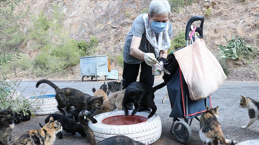 Yaklaşık 200 sokak kedisini eliyle besleyen Gürgün, AA muhabirine, 10 yıldır düzenli olarak her gün kedilerin beslenmesiyle ilgilendiğini söyledi.