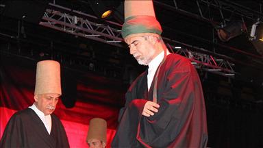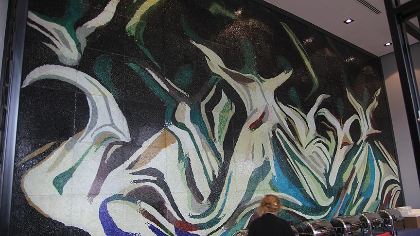 Konya'da yaşayan vitray cam sanatçısı Mine Özbek'in 2 milyonun üzerinde cam parçası kullanarak vitray cam mozaik tekniğiyle 50 metrekarelik alana yaptığı "sema gösterisi" temalı tablo, görenlerin ilgisini çekiyor.