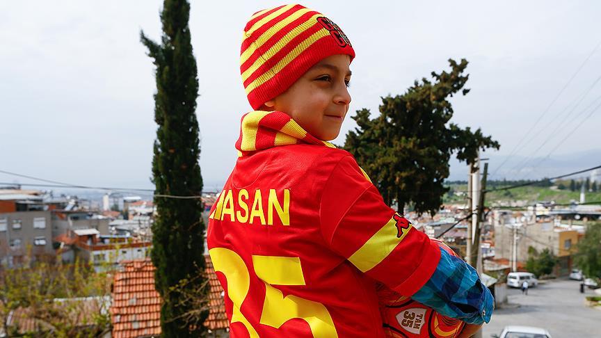 "Göztepe" sloganları atan Hasan, hediyelerini çok sevdiğini, maça da babası Abdulcelil Hantumani ile gideceğini söyledi.