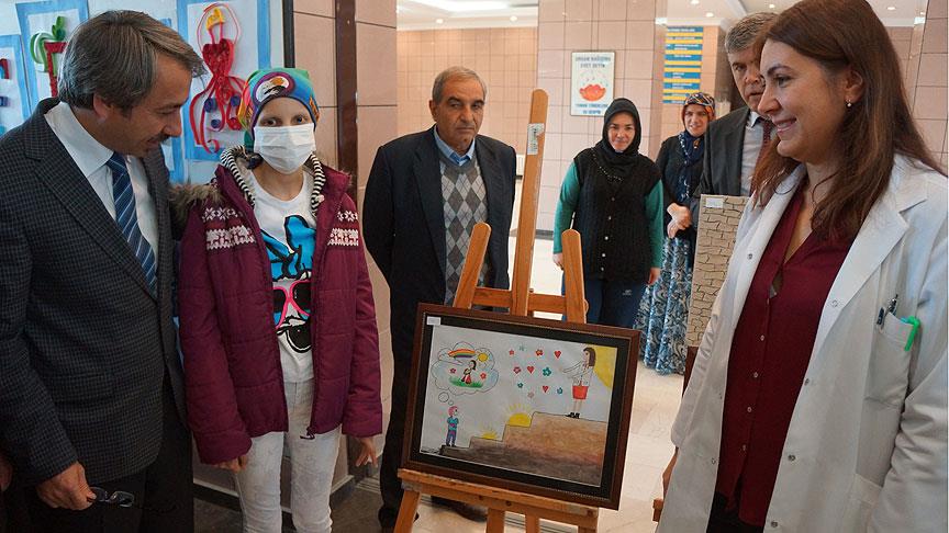 Edirne'de, kanser hastalığıyla mücadele eden çocukların çizdiği "mutluluk" konulu resimlerin yer aldığı sergi, Trakya Üniversitesi (TÜ) Tıp Fakültesi Hastanesinde açıldı.