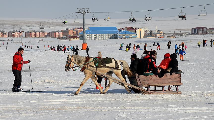 Sarıçam ormanları, kristal karı ve uzun kayak pistleriyle Türkiye'nin önde gelen kış turizm merkezleri arasında yer alan Kars'ın Sarıkamış ilçesindeki Cıbıltepe Kayak Merkezi'nde yılbaşında yağan karın ardından atlı kızak sahipleri da sezonu açtı.