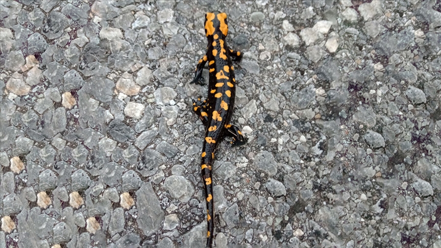 Ekiplerin Yahyalı ilçesi kırsalında Anadolu benekli semenderini doğal yaşam alanında görüntülediği aktarılan açıklamada, şunlar kaydedildi: