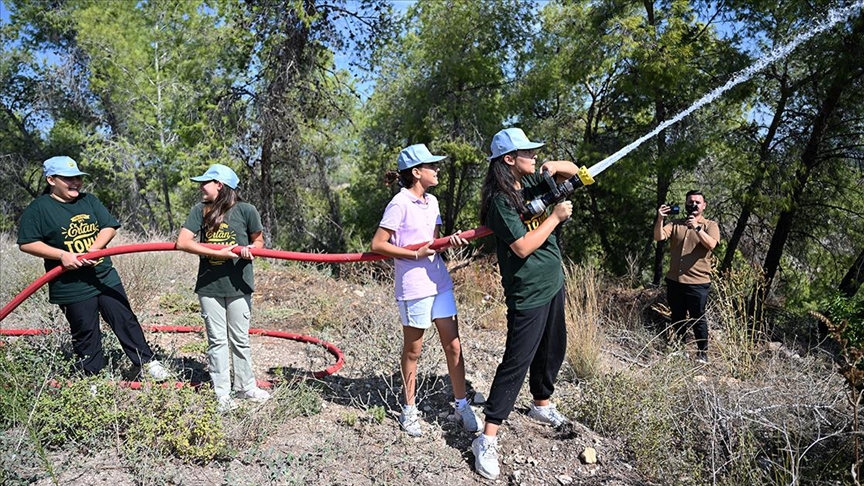 Öğrencilere ayrıca "Yeşil Vatan"ın önemi ekiplerce anlatıldı, yangın söndürmede kullanılan diğer teçhizatla ilgili bilgiler verildi.