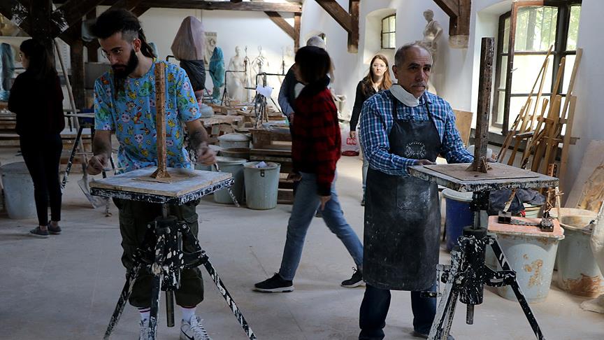 Emekli 74 yaşındaki Hayati Fidan ve 56 yaşındaki Şerif Aslan, güzel sanatlara olan ilgilerini akademiye taşımak amacıyla özel yetenekle girdikleri heykel bölümünde eğitimlerine başladı.