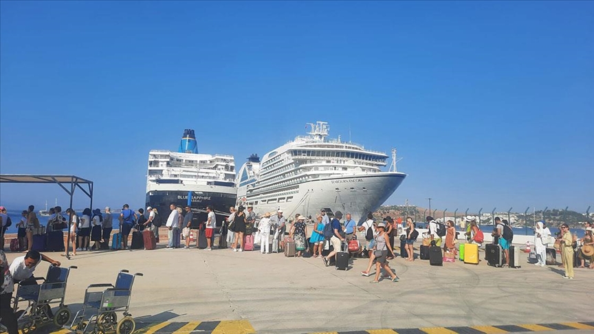 175 metrelik "Blue Sapphire" adlı kruvaziyer de yolcularını indirmek için Rodos Limanı'ndan 435 yolcu ve 397 personeliyle Bodrum Cruise Port'a yanaştırıldı.