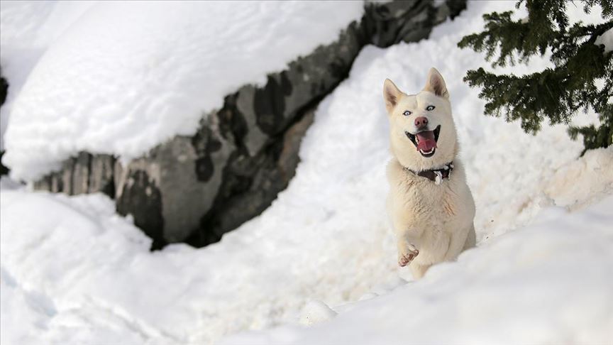 Antalya'nın Akseki ilçesinde ilk kez kar gören, Sibirya kurdu olarak bilinen "Husky" cinsi köpeğin sevinci, renkli görüntüler oluşturdu. ( Mustafa Hatipoğlu - Anadolu Ajansı )