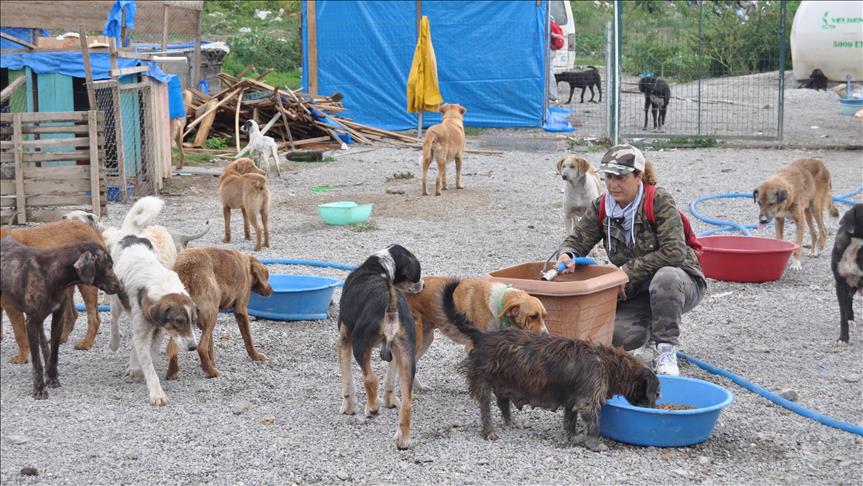 "O sokak hayvanlarının da bizim gibi bir canı olduğunu bilmelerini istiyorum. Sabah erkenden buraya geliyorum, gelirken kemik alıyorum, mamalarını toparlıyorum. Kemikleri makarnayla haşlıyorum. Anne olanları çöplerin içlerinden topluyorum. Ben topluyorum kısırlaştırıyorum, yine buraya atıyorlar. Mağdur durumda bırakıyorlar bizi, 400 sahipsiz sokak hayvanına da bakamıyorum artık. Benim bütün günüm burada geçiyor, temizlik yapıyorum, hastaların ilaçlarını vermeye çalışıyorum."