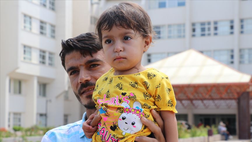 Suriye'nin İdlib kentinde ailesiyle çadırda kalan ve kalbindeki rahatsızlık nedeniyle Türkiye'de ameliyatı yapılan Aye bebek, taburcu edildi.