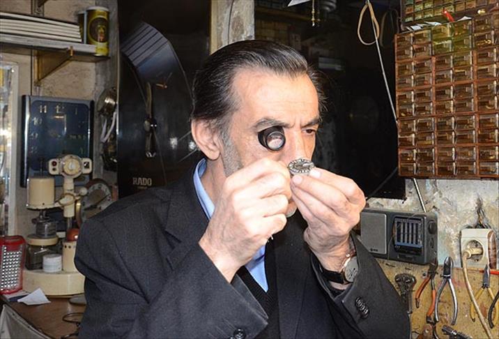 Diyarbakır'da saat tamir ustası Celal Yakışıklı, babasından öğrendiği ve 45 yıldır severek sürdürdüğü mesleğini yaşatmak için oğluna öğretiyor.