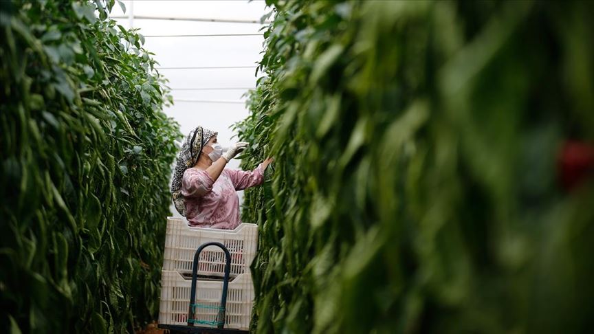 Yeni tip koronavirüsle (Kovid-19) mücadele kapsamında sosyal mesafe kuralına uyarak, hijyenik koşullarda üretim gerçekleştiren çiftçiler, maske ve eldiven kullanımına da dikkat ediyor.