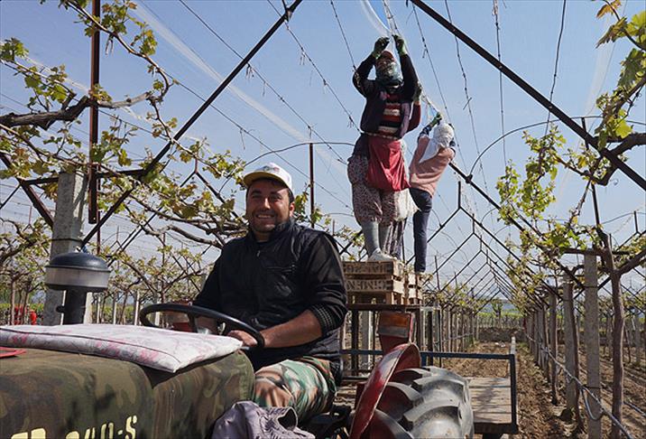 Üzüm üreticisinin tek korkusunun dolu olduğunu anlatan Akbaş, üç yıl önce Adana’dan "dolu tülü" adı verilen naylon aldığını ifade etti.