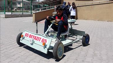 Erciş Oto Sanayi Sitesi'nde oto tamirciliği yapan 19 yaşındaki Muhammed Can, atıl durumdaki malzemeleri bir araya getirdi.