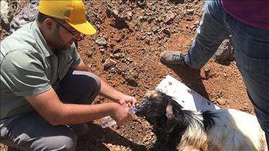 Edirne'de bir inşatta zifte yapışan üç köpek yavrusu ve anneleri kurtarıldı.